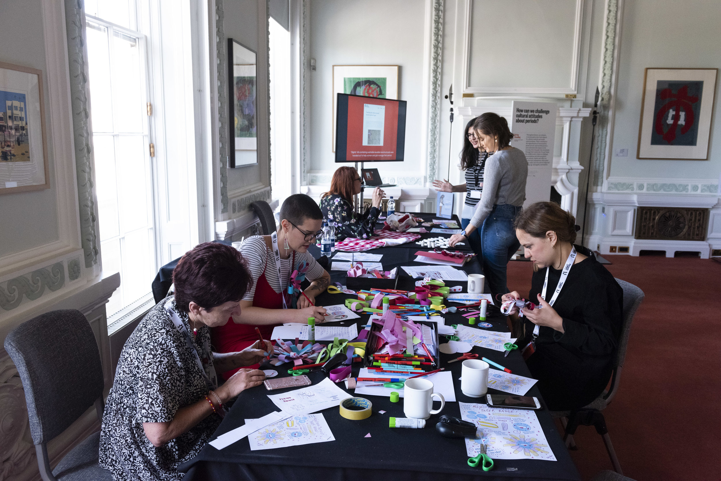 Bee Hughes & Dr Kay Standing were among fifteen research exhibits featured at the British Academy Summer Showcase held at the British Academy in London on 20-22 June 2019. Their exhibit, ‘How can we challenge cultural attitudes about periods?’ presented aspects of Kay’s collaborative (British Academy funded) research in Nepal, and Bee’s research in the visual cultures of menstruation. Bee also led a hands-on craft workshop over the course of the event, creating activist badges from paper with visitors of all ages.